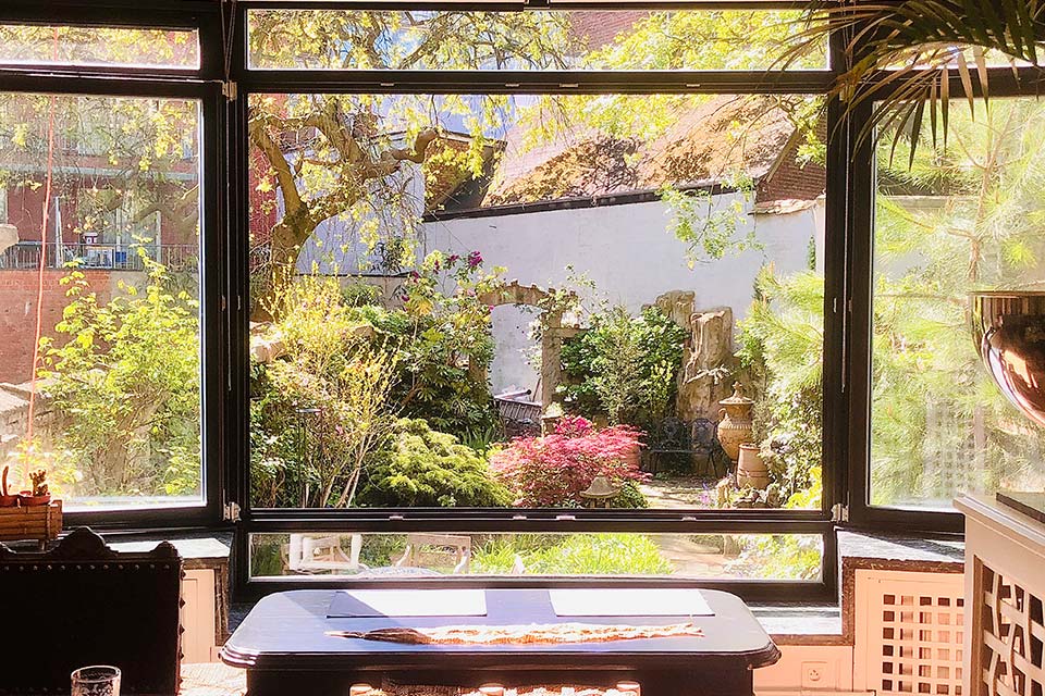 Vanaf het prille begin was het onze bedoeling om, in het historische centrum van deze prachtige stad, een plek te creëren waar het goed en rustig toeven is, en waar de gejaagdheid en oppervlakkigheid van onze snelle wereld ver weg zijn. Voor ons betekent dat: genieten van de stilte tussen onze oude muren, het koesteren van schoonheid (interieur, kunst, literatuur), de tijd nemen voor een goed gesprek, en last but not least: trage voeding, live cooking, genieten van pure smaken. En de nobele kunst van de gastvrijheid natuurlijk.