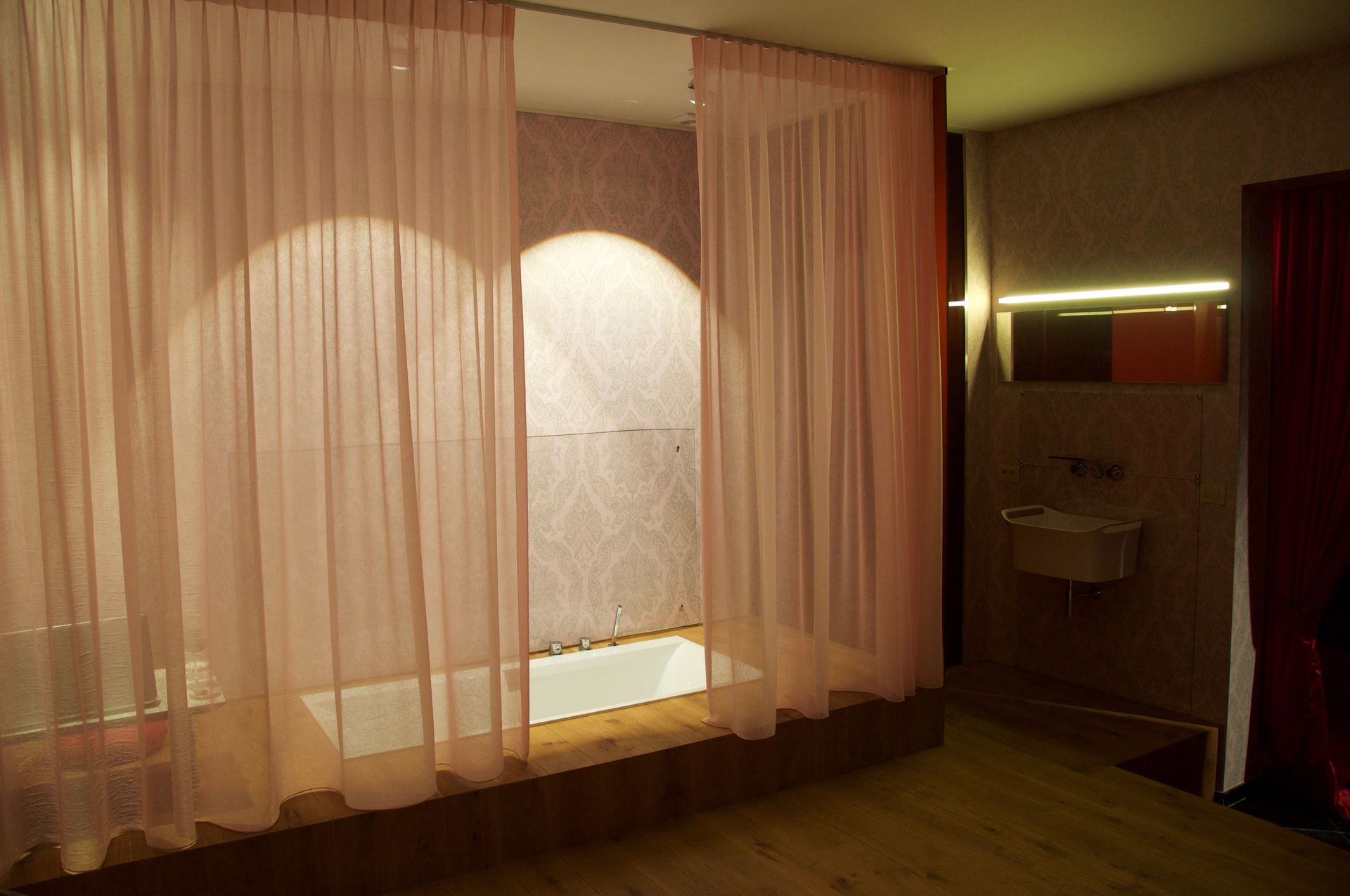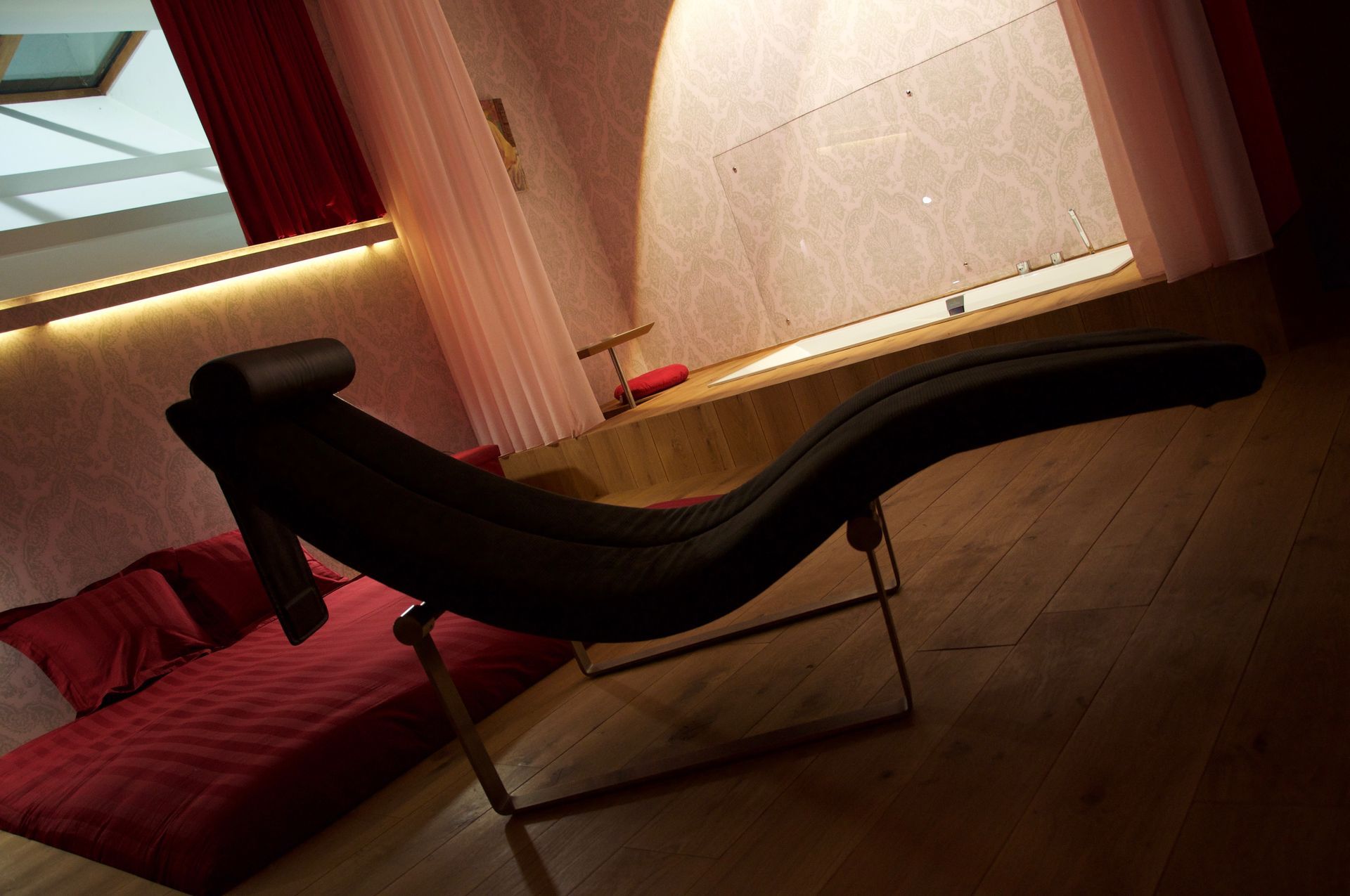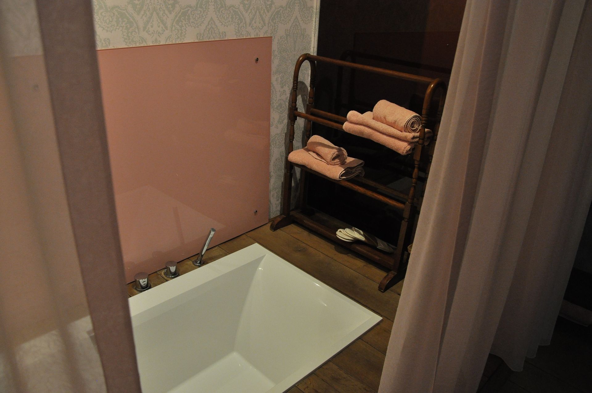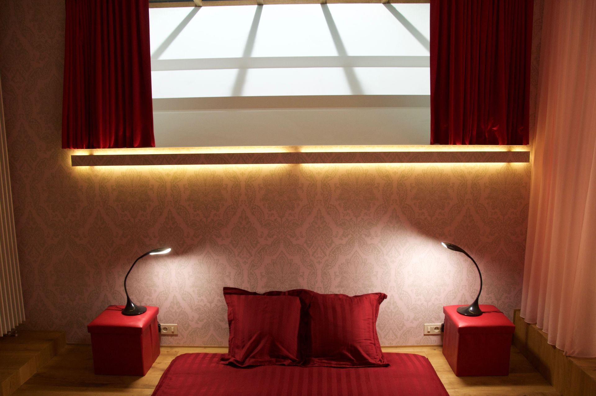 In the Honeymoon suite you stay and sleep surrounded by books and art works by beginning talents (studying in the nearby art schools) as well as by established artists. Some of the works in the room and in the windows are for sale, so in a way you’ll be staying in an art gallery. Bath and bed are ‘Japanese style’ built in the floor, and there’s a kitchenette.